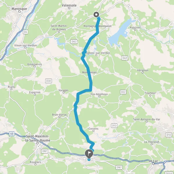 Au rond-point, prendre la 3ème sortie sur D13 (Route de Barjols) et continuer sur 9,3 kilomètres
