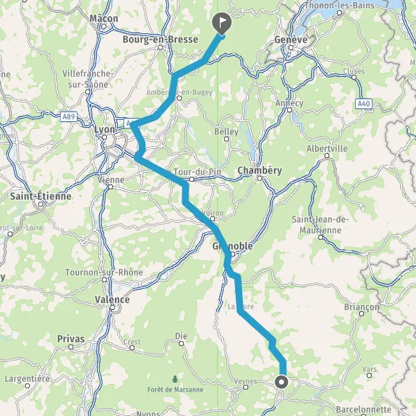 Prendre à droite et rejoindre A43 E711 E70. Continuer sur 26 kilomètres