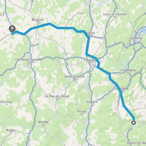 Prendre à droite et rejoindre A43 E711 E70. Continuer sur 34 kilomètres