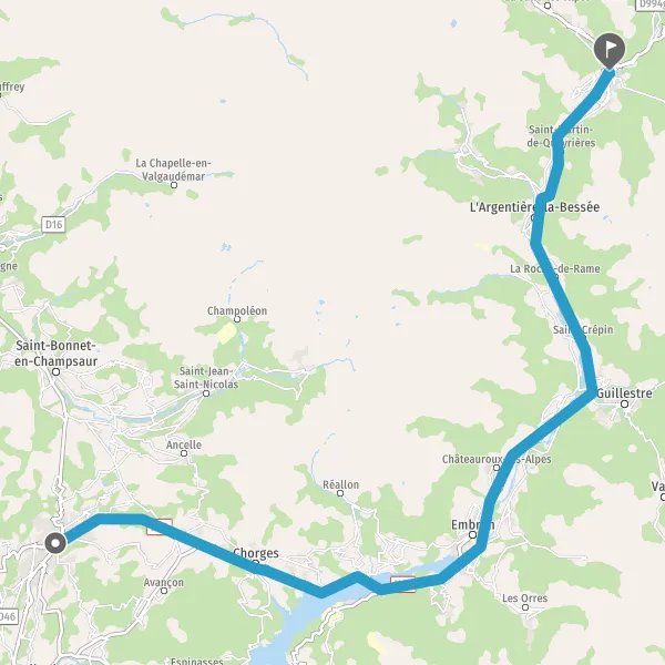 Au rond-point, prendre la 2ème sortie sur N94 (Avenue d'Embrun) et continuer sur 10 kilomètres