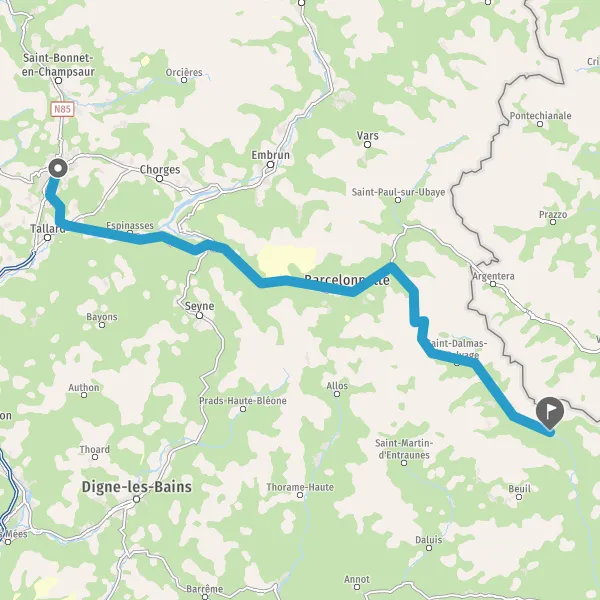 Tourner légèrement à droite sur Route de Restefond et continuer sur 500 mètres