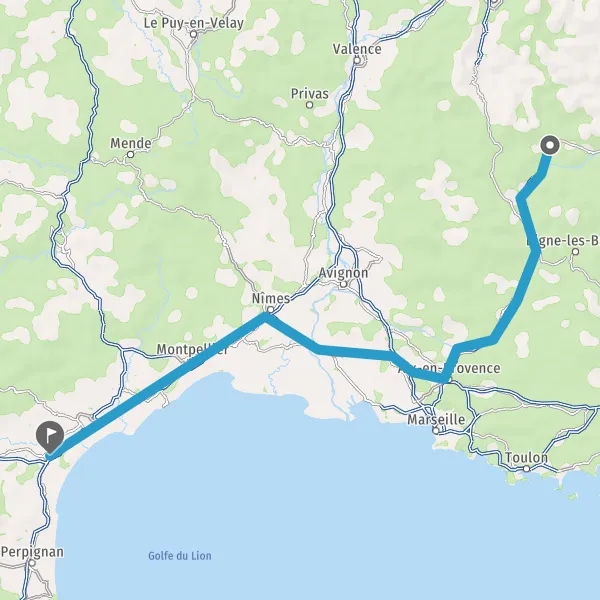 Continuer E15 (La Languedocienne) sur 104 kilomètres