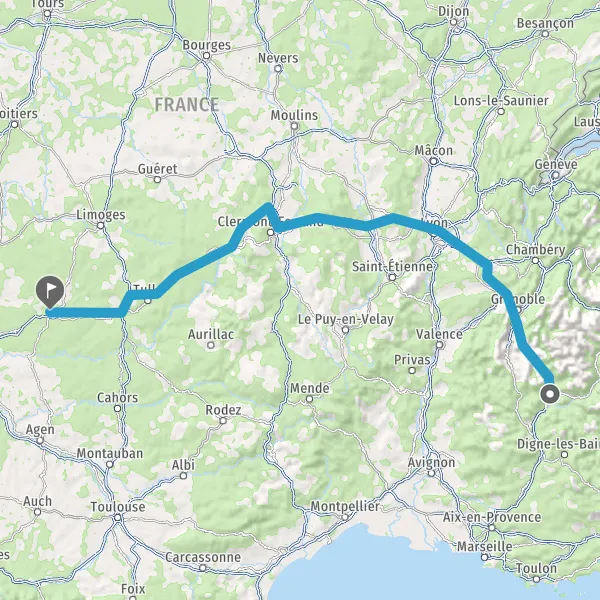 Prendre à droite et rejoindre A89 E70. Continuer sur 161 kilomètres