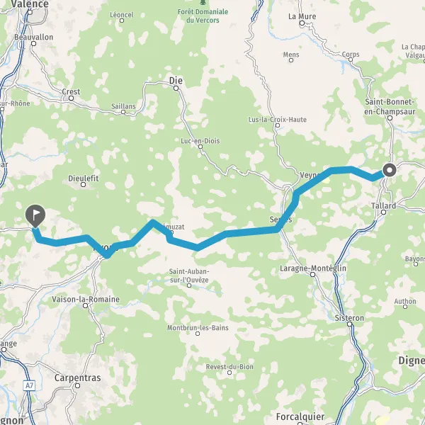 Tourner légèrement à droite sur D94 (Route de Nyons) et continuer sur 31 kilomètres