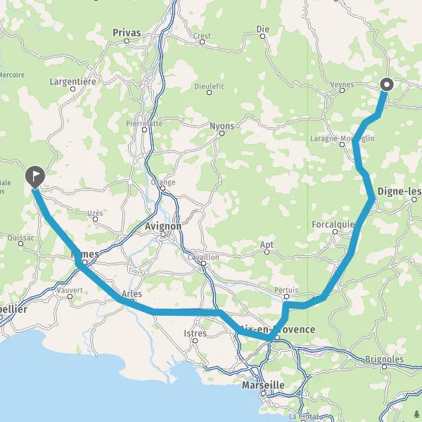 Prendre à droite et rejoindre A8 E80. Continuer sur 29 kilomètres