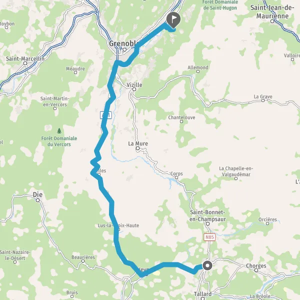 Tourner légèrement à droite sur N85 D1085 (Route du 45ème Parallèle) et continuer sur 12 kilomètres