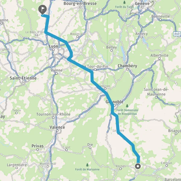 Prendre à droite et rejoindre A43 E711 E70. Continuer sur 26 kilomètres