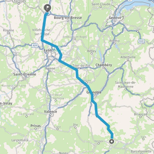 Prendre à droite et rejoindre A43 E711 E70. Continuer sur 26 kilomètres