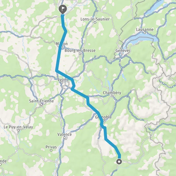 Prendre à droite et rejoindre A43 E711 E70. Continuer sur 26 kilomètres