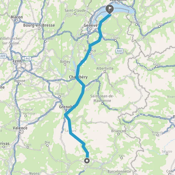 Prendre à gauche et rejoindre A41 E712. Continuer sur 45 kilomètres