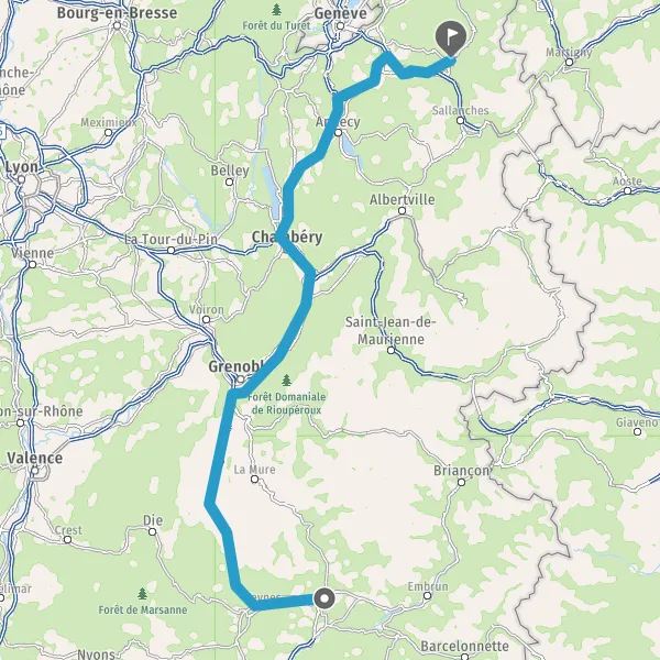 Prendre à gauche et rejoindre D1205 (Route de Cluses). Continuer sur 40 mètres