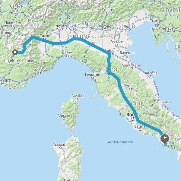 Entrer en Italie et prendre SS24 SS24 SS24 Strada 24 Strada 24 Strada 24 (Via Nazionale) sur 85 mètres