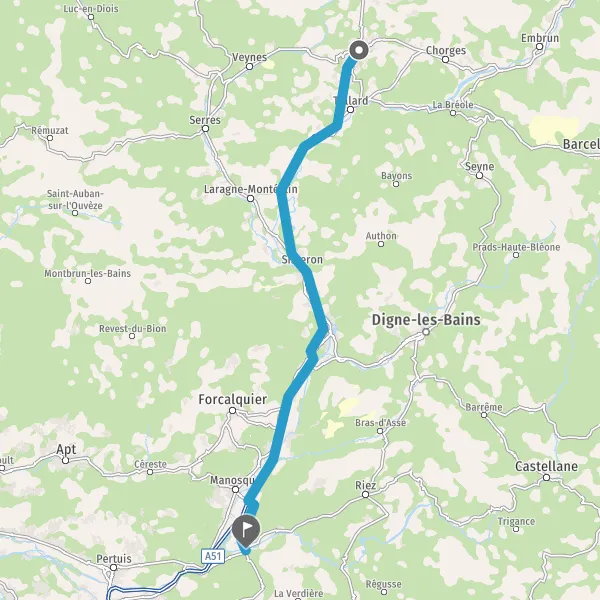 Au rond-point, prendre la 3ème sortie sur A51 et continuer sur 82 kilomètres