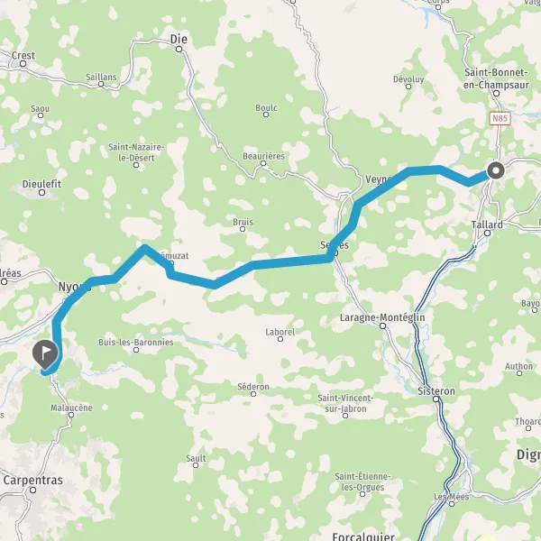 Tourner légèrement à droite sur D94 (Route de Nyons) et continuer sur 31 kilomètres