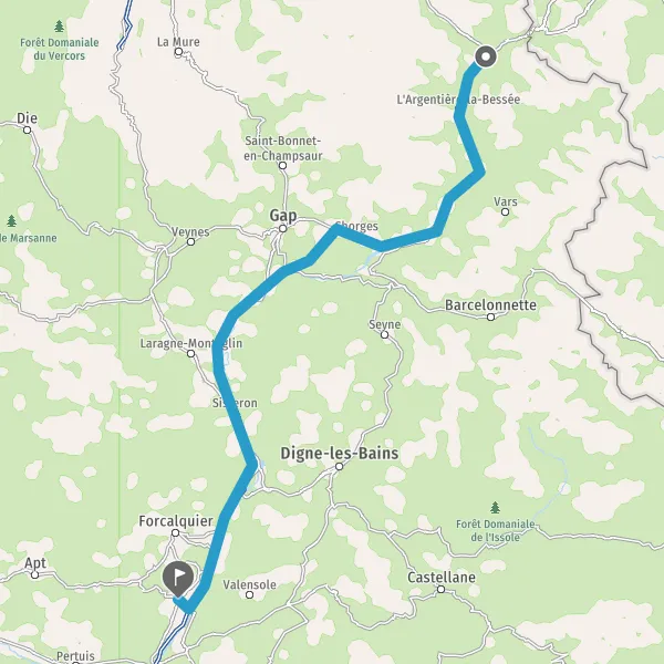 Au rond-point, prendre la 3ème sortie sur N94 (Route de Gap) et continuer sur 20 kilomètres