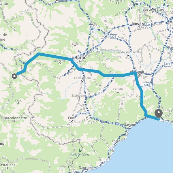 E70PIACENZAA21GENOVAA26E25MONCALIERISS393TORINOc.so. Unità d'ItaliaLingotto