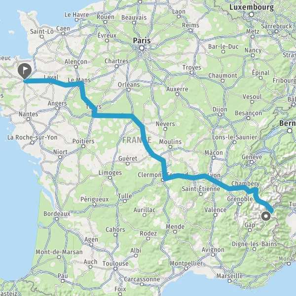 Prendre à droite et rejoindre A85 E604. Continuer sur 105 kilomètres