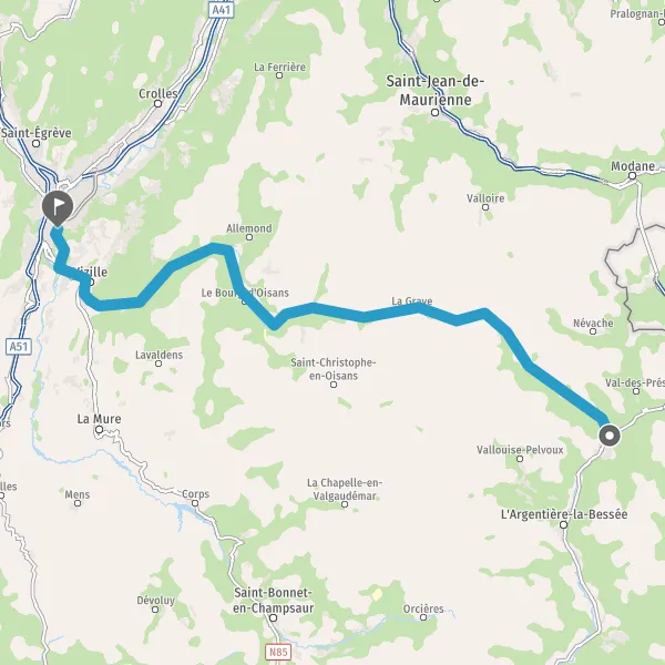Prendre à droite et rejoindre D1091 (Route de Grenoble). Continuer sur 18 kilomètres