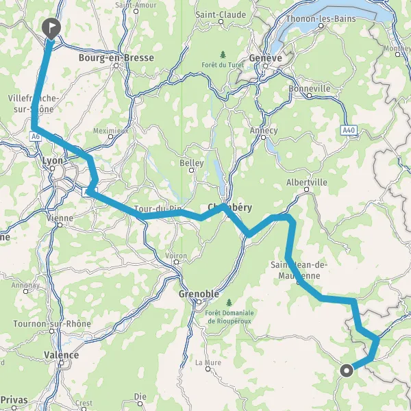 Prendre à droite et rejoindre A43 E711 E70. Continuer sur 26 kilomètres