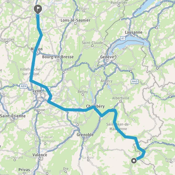Continuer et rejoindre A43 E70. Continuer sur 73 kilomètres