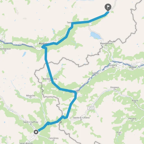 Tourner légèrement à droite sur D216 (Route de Bardonecchia) et continuer sur 750 mètres