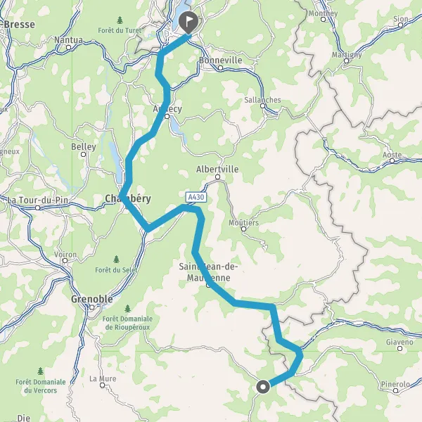 Prendre à droite et rejoindre A43. Continuer sur 7,8 kilomètres
