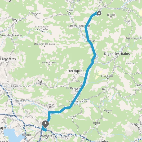 Avec le mode voiture, vous pouvez configurer vos options (type de véhicule, autoroute ou non, péage ou non, distance la plus courte), tout en ayant accès aux infos de circulation grâce à notre service d'info-trafic en temps réel. Ainsi faites des économies sur le coût ou la durée de votre voyage, en trouvant le trajet Curbans Aix-en-Provence adapté à vos besoins.