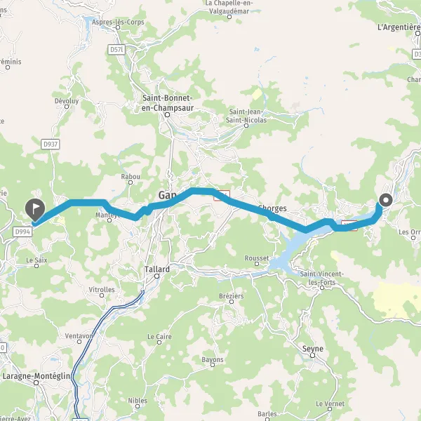 Au rond-point, prendre la 2ème sortie sur N94 (Route de Gap) et continuer sur 20 kilomètres