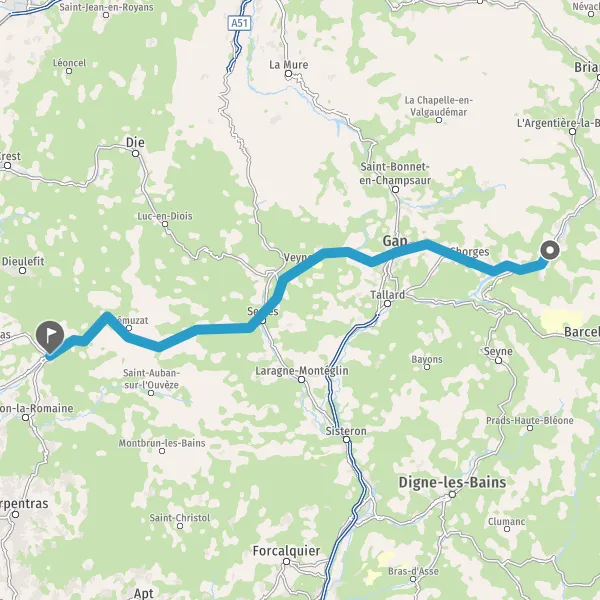 Tourner légèrement à droite sur D94 (Route de Nyons) et continuer sur 31 kilomètres