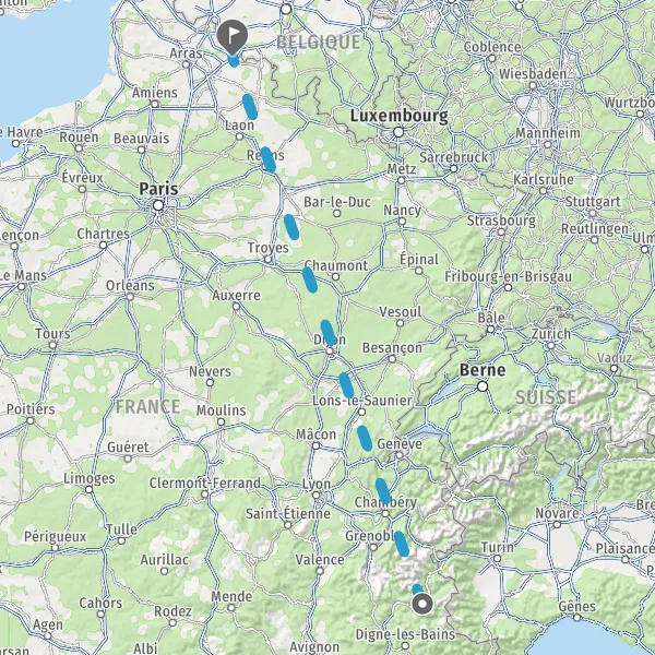 Prendre à droite et rejoindre A26 E17. Continuer sur 96 kilomètres