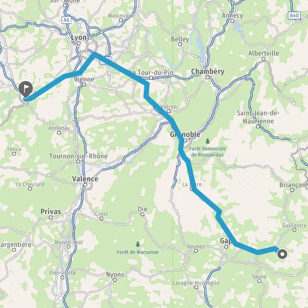 Prendre à gauche et rejoindre A46 E15 E70. Continuer sur 21 kilomètres
