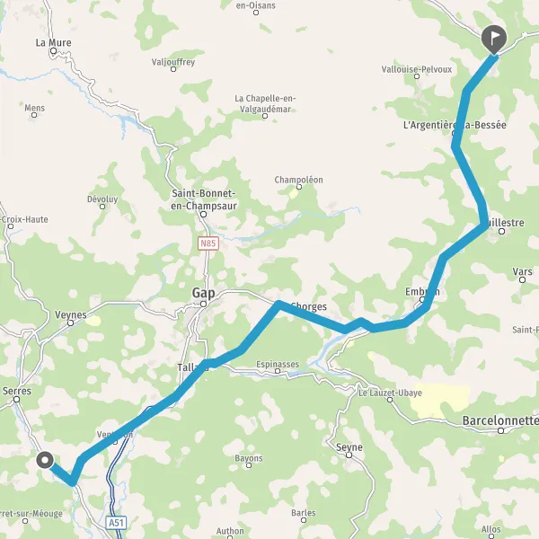 Au rond-point, prendre la 2ème sortie sur N94 (Route de Gap) et continuer sur 1,7 kilomètre