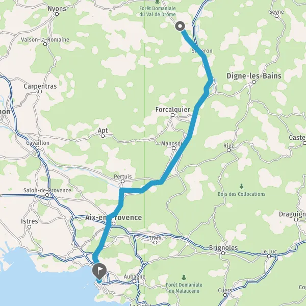 Avec le mode voiture, vous pouvez configurer vos options (type de véhicule, autoroute ou non, péage ou non, distance la plus courte), tout en ayant accès aux infos de circulation grâce à notre service d'info-trafic en temps réel. Ainsi faites des économies sur le coût ou la durée de votre voyage, en trouvant le trajet Laragne-Montéglin Marseille adapté à vos besoins.