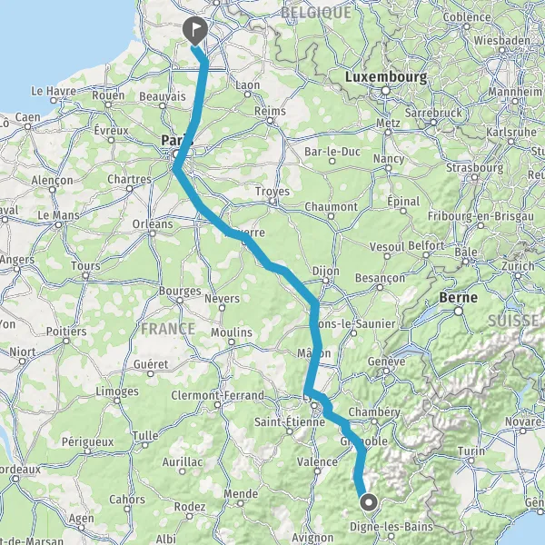 Prendre à droite et rejoindre A6. Continuer sur 294 kilomètres