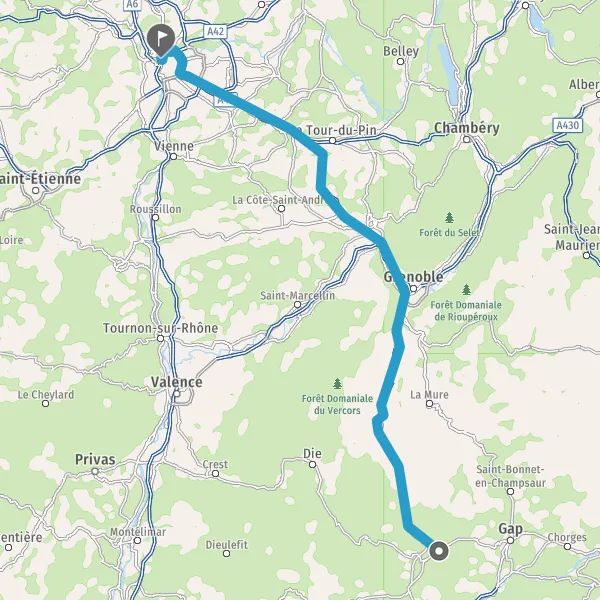Continuer D1075 E712 (Route de Grenoble) sur 17 kilomètres