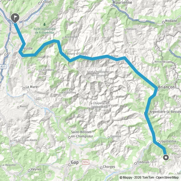 Prendre à droite et rejoindre D1091 (Route de Grenoble). Continuer sur 18 kilomètres