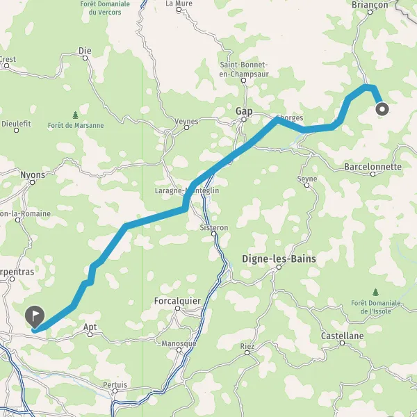 Au rond-point, prendre la 3ème sortie sur N94 (Route de Gap) et continuer sur 20 kilomètres