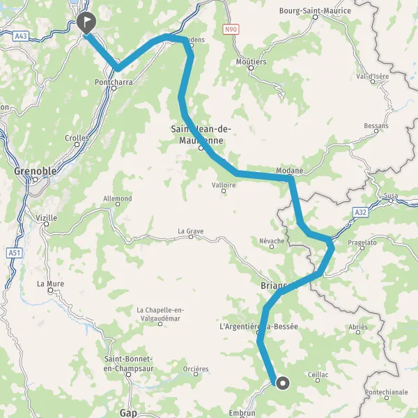 Prendre à droite et rejoindre A43. Continuer sur 7,8 kilomètres