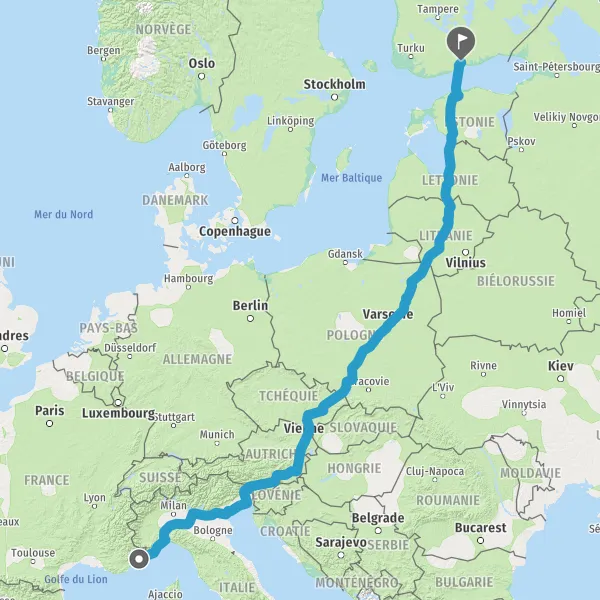 Entrer en Lettonie et prendre A7 E67 sur 19 kilomètres