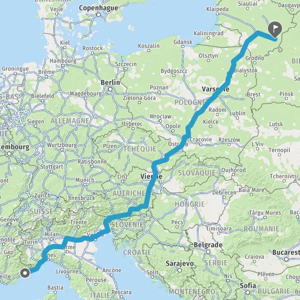 Prendre à gauche et rejoindre E77 S8 E67 S7 (Aleja Obrońców Grodna). Continuer sur 38 kilomètres