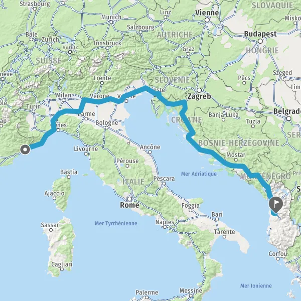 Entrer en Albanie et prendre Rruga Hani Hotit sur 1,5 kilomètre