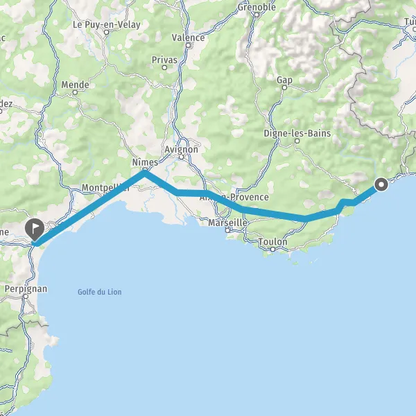 Continuer E15 (La Languedocienne) sur 104 kilomètres
