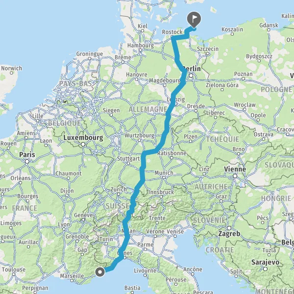Entrer en Allemagne et prendre B96 E22 E251 (Rügenbrücke) sur 21 kilomètres
