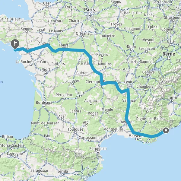Prendre à droite et rejoindre A83. Continuer sur 150 kilomètres