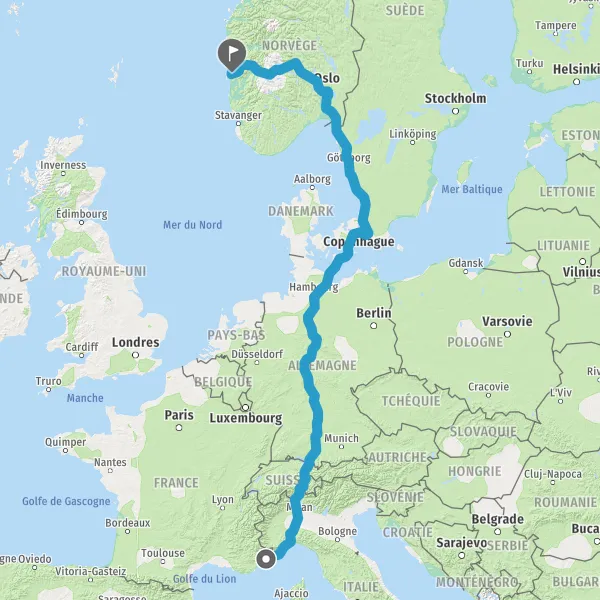 Au rond-point, prendre la 1ère sortie sur E16 (Evangervegen) et continuer sur 39 kilomètres