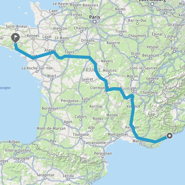 Prendre à droite et rejoindre A85 E604. Continuer sur 205 kilomètres