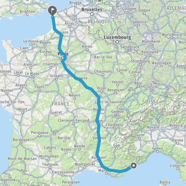 Prendre à droite et rejoindre A16. Continuer sur 224 kilomètres