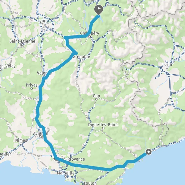Sortir et rejoindre Avenue du Rhône. Continuer sur 650 mètres