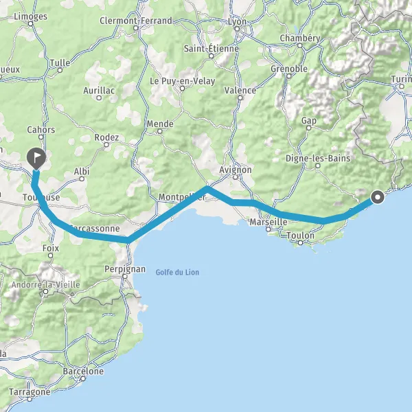 Prendre à droite et rejoindre A61. Continuer sur 136 kilomètres