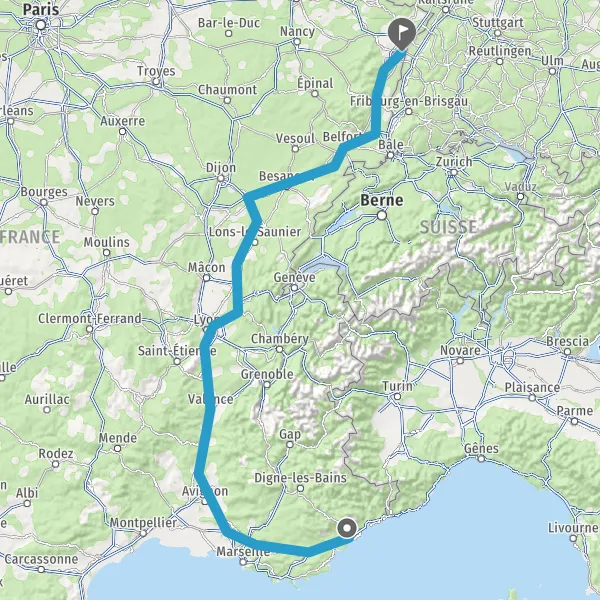 Prendre à droite et rejoindre A36 E60. Continuer sur 185 kilomètres